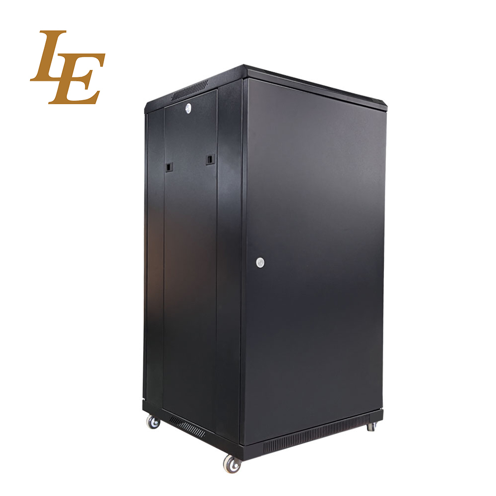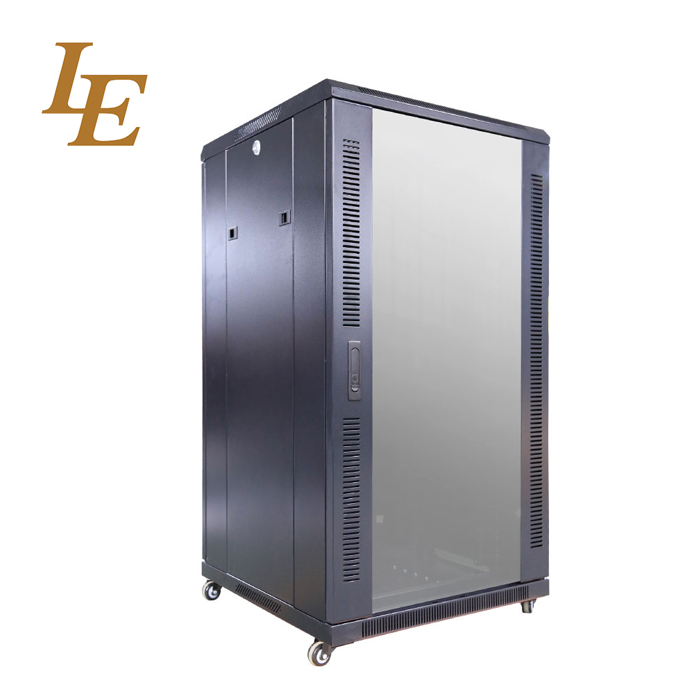 19 polegadas 18U 800mm Largura 22U 600mm Largura Porta da frente de vidro temperado e porta traseira de metal sólido com fechaduras de alça Racks RAL9004 preto RAL9005 preto embalagem plana